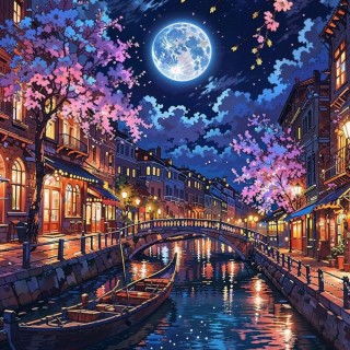 Night-canal-blossom-moonlight